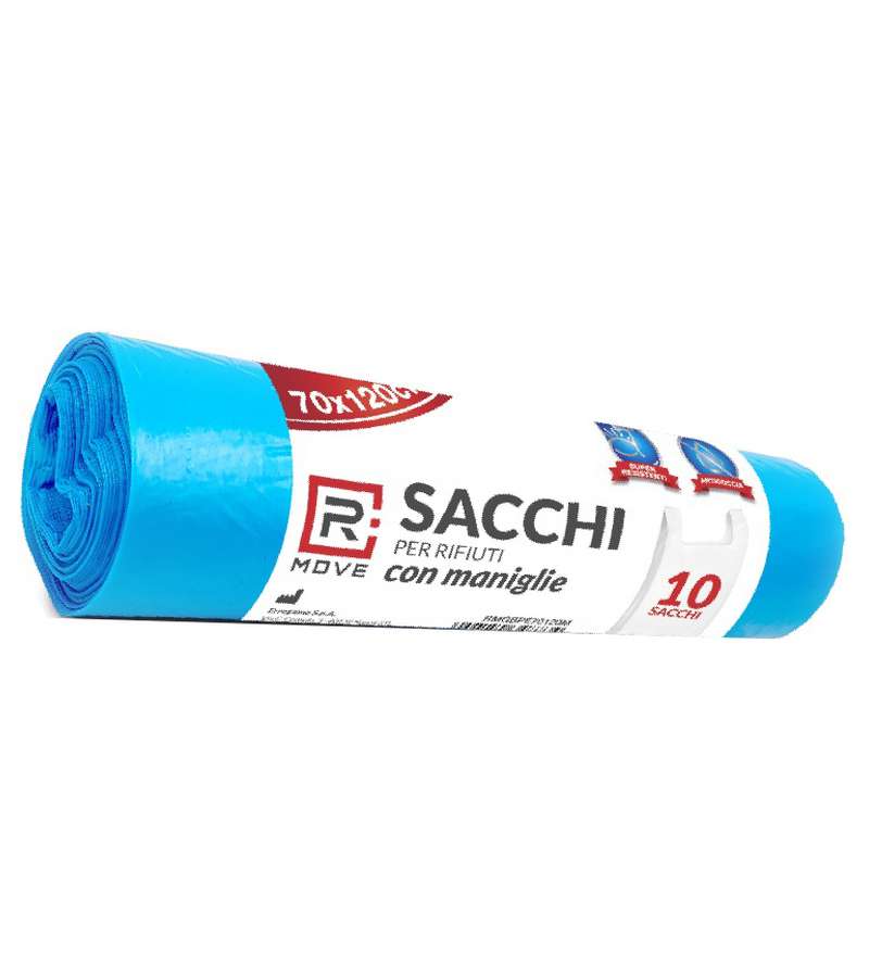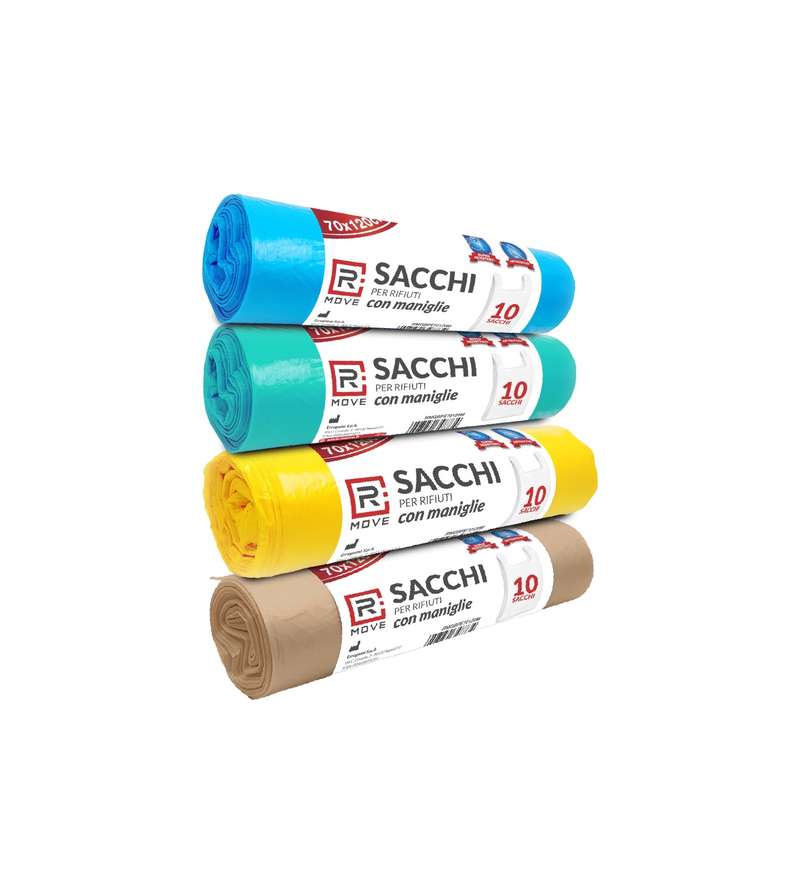4 rotoli da 10 Sacchi per rifiuti con ManiglieMisure 70 x 120 cmPack 4 Colori diversiSuper resistenti - Antigoccia