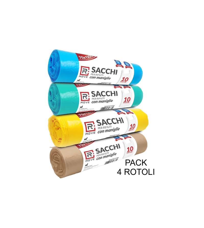 4 rotoli da 10 Sacchi per rifiuti con Maniglie